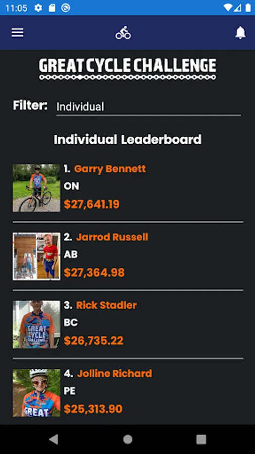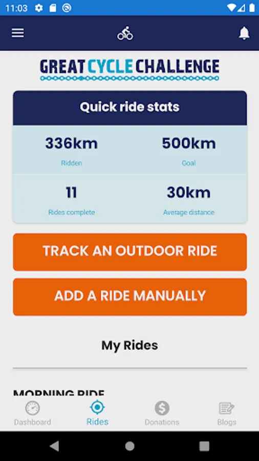 Great Cycle Challenge's mobile application uses GPS to record the distance of your bike rides while taking part in the fundraising event to fight kids' cancer. Each ride immediately syncs with your individual and team fundraising profile pages and automatically updates the distance ridden towards your event goal as you chase it down!