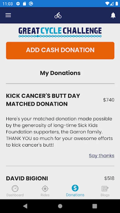 The app also allows participants to update their ride and fundraising goals, post blog updates, view past rides, thank sponsors, enter in offline cash donations, view leaderboards and more.