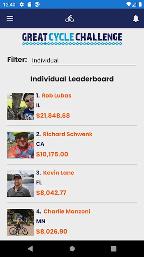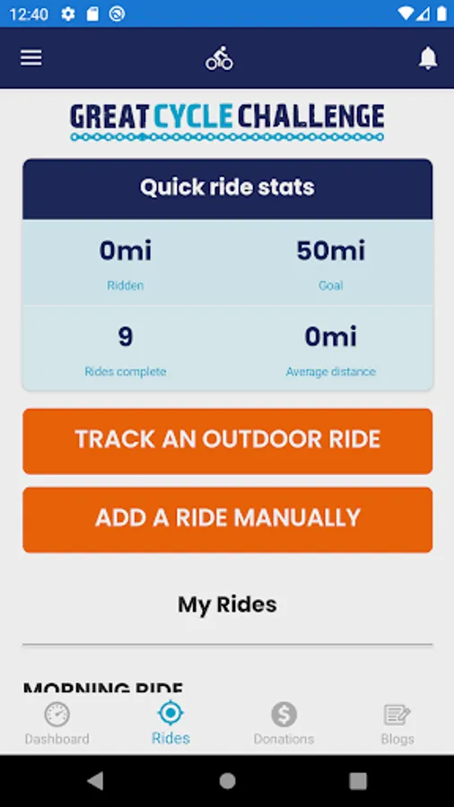 Great Cycle Challenge's mobile application uses GPS to record the distance of your bike rides while taking part in the fundraising event to fight kids' cancer. Each ride immediately syncs with your individual and team fundraising profile pages and automatically updates the distance ridden towards your event goal as you chase it down!