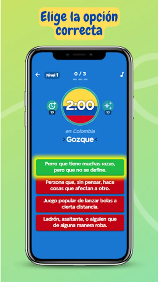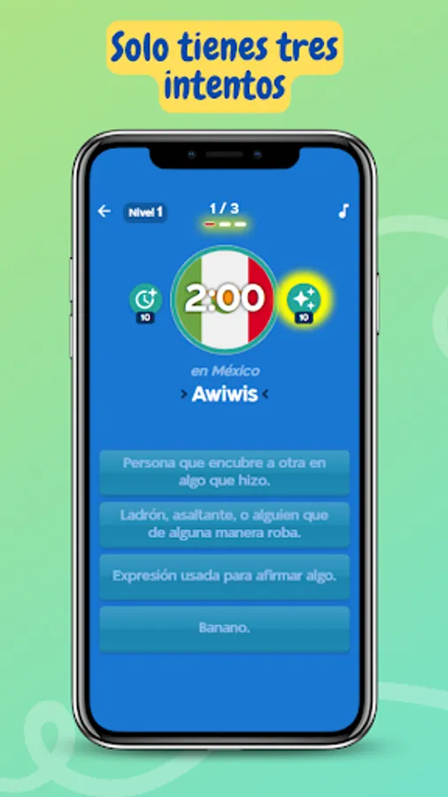 The dynamics of the game is very simple: When you start playing, you will see the flag of a Latin American country and below a word that you have to guess its meaning. You will be presented with four options, where only one of them is correct.