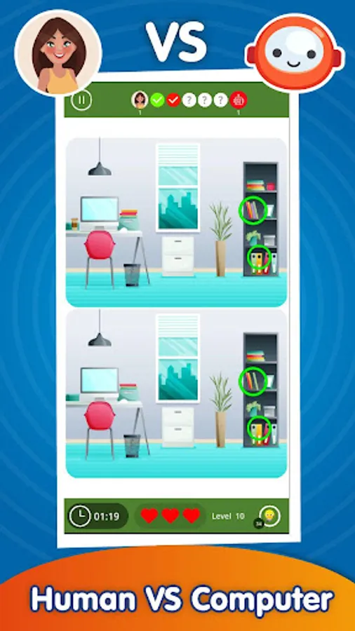● Computer Mode 🤖 Are you ready to beat a powerful AI designed to find differences? you must have found more differences then computer to win the game.