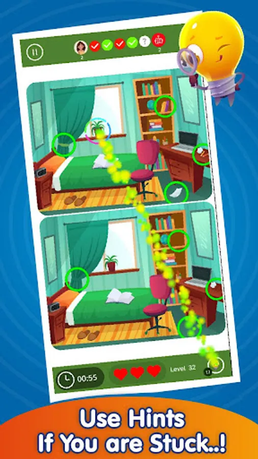It's time to put your 🕵 detective hat on and take your magnifying glass and Find Different secrets. This Challenging Fun puzzle improves your concentration and observation skills.Enjoy amazing pictures and find the differences just like hidden object games! Each level present with two photographs that look like identical but there are few small differences between them.your objective is just observe or compare pictures and try to locate the difference by tap on it before time runs out.You must spot them as fast as you can or you can use Free Hint if you are not able to reveal the difference.become a detective, seek and find those very challenging Hidden Differences.
