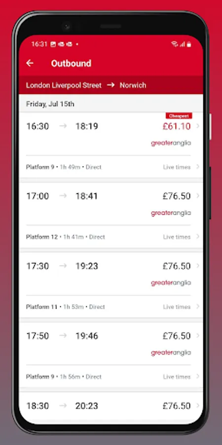 Book your train tickets quickly and easily with Greater Anglia’s new app. And just so you know, when you buy tickets with us we do not charge any booking or payment card fees (unlike some we could mention).