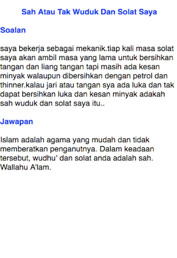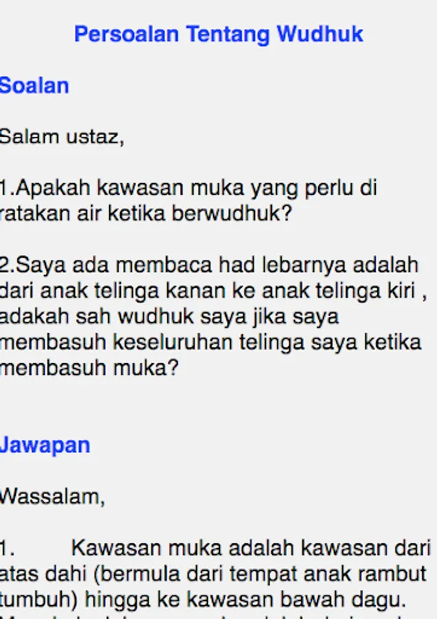 Want to learn how to complete ablution. You can get it here. We provide about 46 questions (Will be added from time to time) regarding wudhu (or ablution) problems and answers.