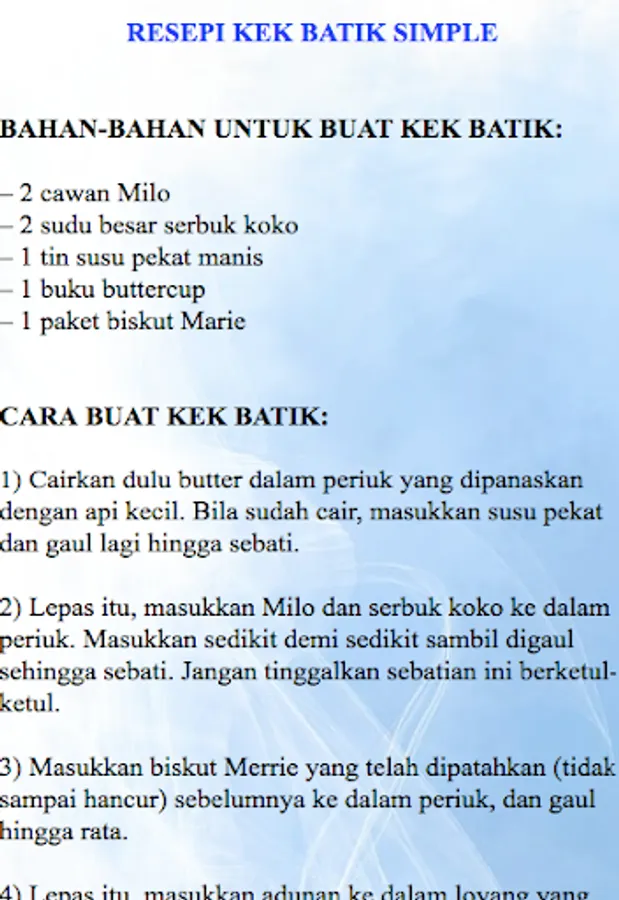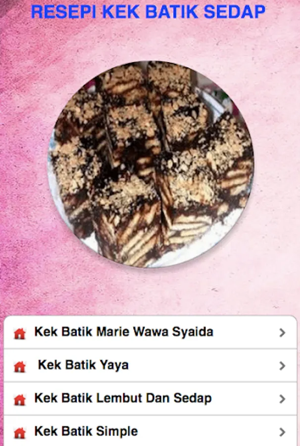 Get the most delicious recipes of Batik Cake! A variety of recipes you can prepare now. We also provide a list of the necessary materials, the manufacturing methods and the secret tips in supplying the best batik cake :-)