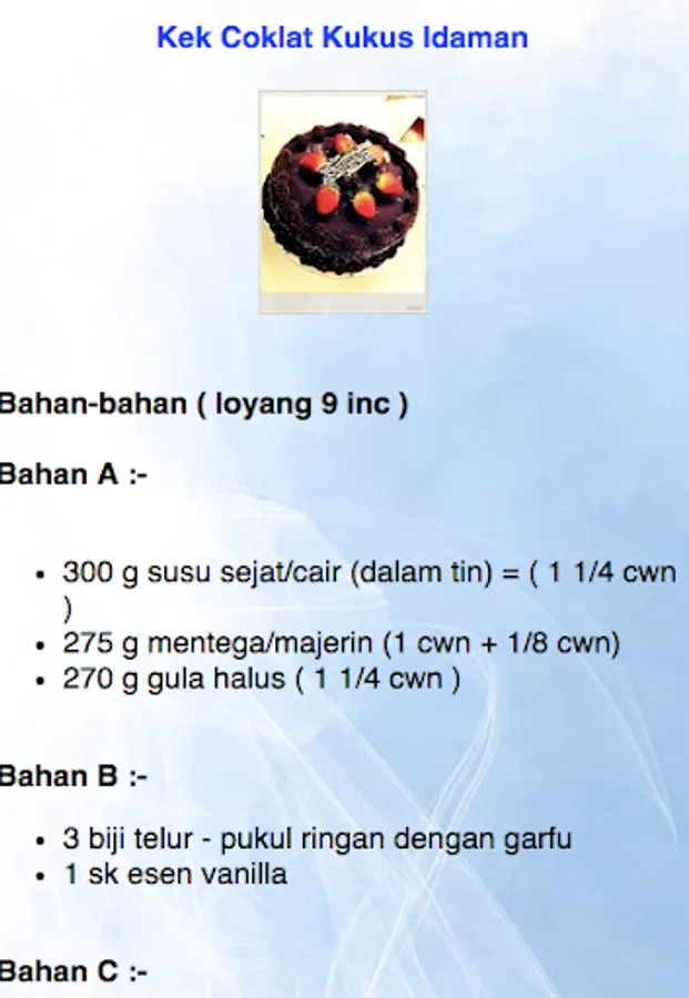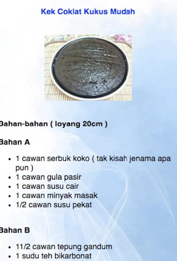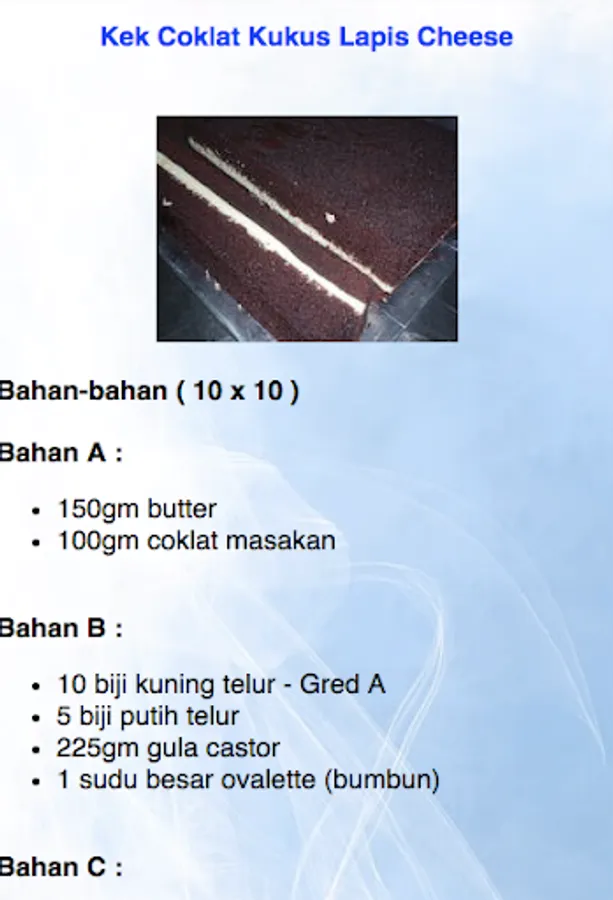 Let's try the most delicious Cheese Chocolate Recipe! You definitely do not regret trying it out. What else ? Jom Try :-) There are many variations, some are moist / damp and there are also some types of steamed chocolate soup. Hopefully useful.