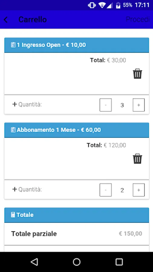 - view and edit the credentials for logging into the app. Registration is not mandatory, but it is necessary to make purchases.