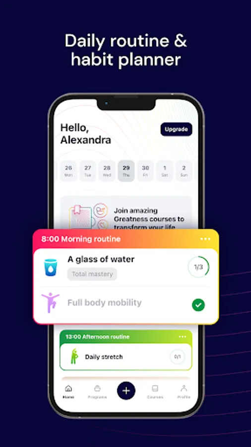 Greatness is a lifestyle management app that helps you build healthy daily habits and self-care routines to improve your physical, mental, and emotional well-being. Think of it as a daily habit tracker, routine planner, and personal lifestyle coach – all in one.