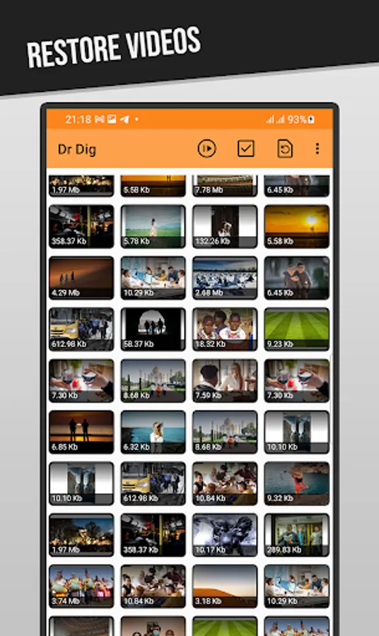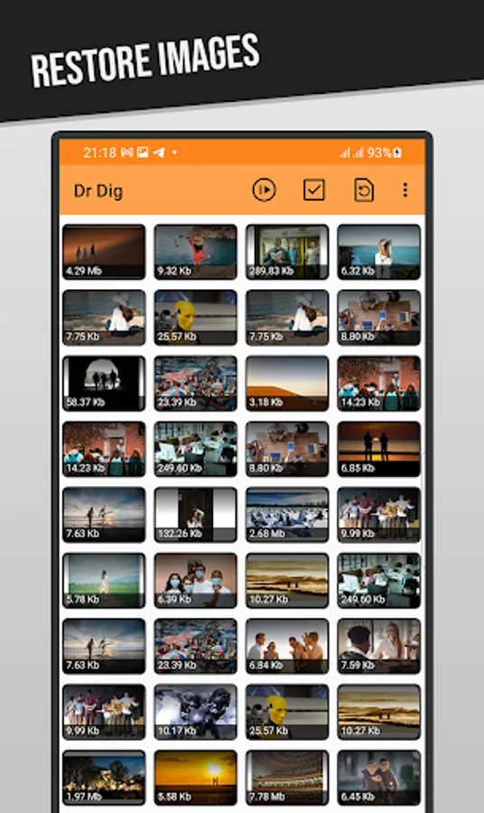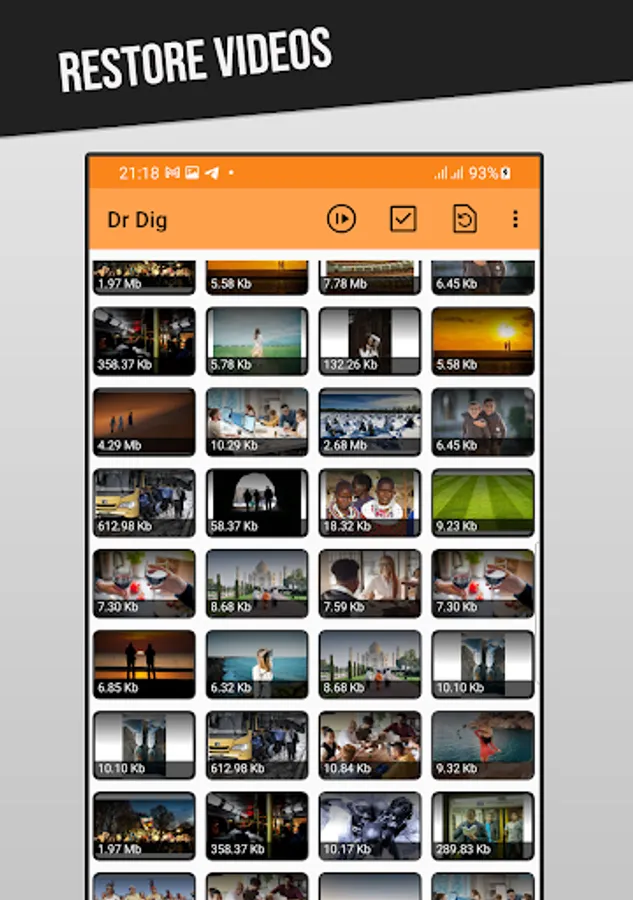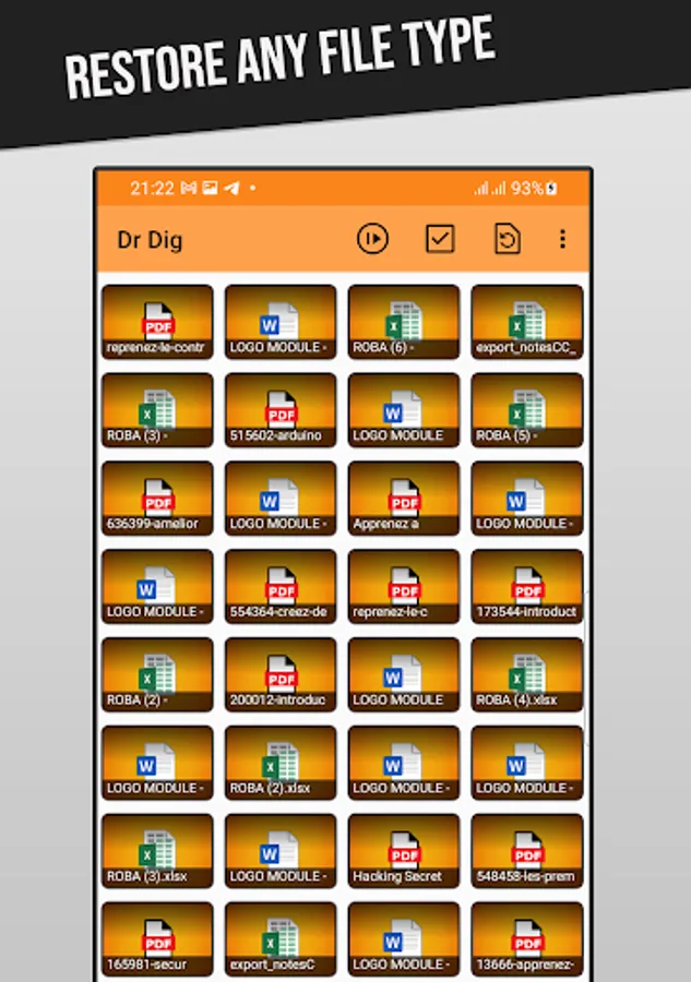 After launching the app and giving the necessary permission, Select desired file type from the menu, either images, videos, or files. The scan will start, wait until it finishes, the longer it takes depends in your device storage size. After that you can view and undelete files easily.