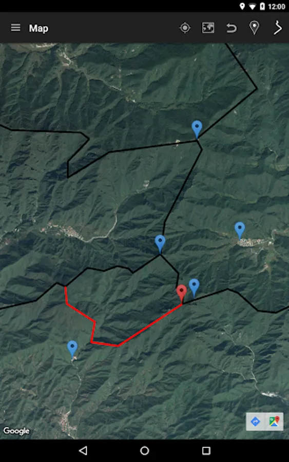 Use the Action Bar buttons to control the map. Touch the location button to center the map on your current location if you haven't enabled following. Your location is shown by a blue dot or arrow. The accuracy of your location is illustrated by a circular area around the marker. You could be anywhere within the circle.
