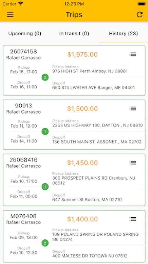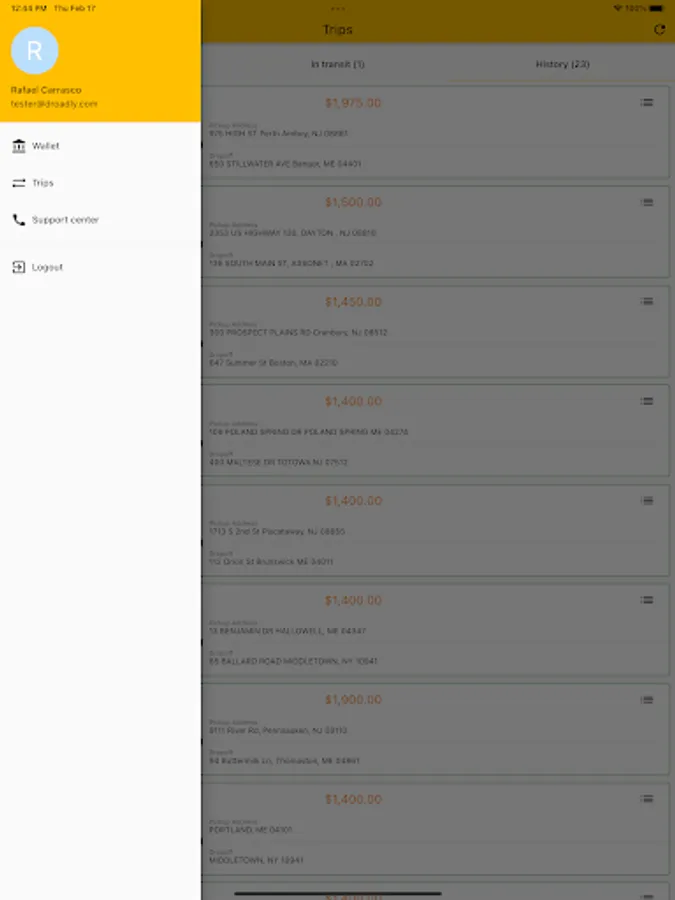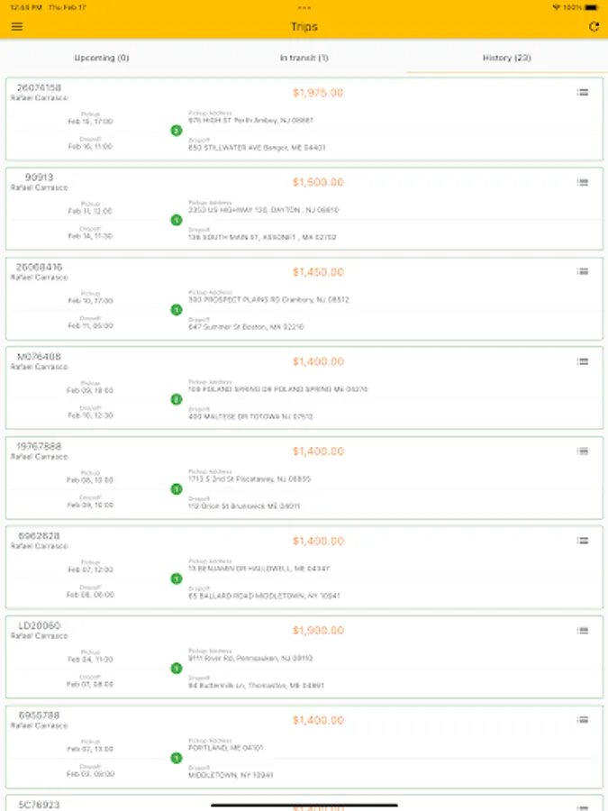 You will have access to a loadboard where you can apply for TRIPS Local and Overnigth, receive the weekly work and see the earning you will get paid by each trip in realtime.