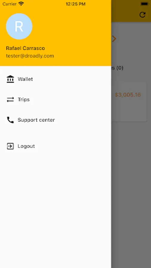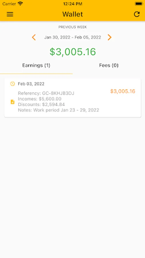 The Wallet section will show you the amount of money that you will get paid for each completed trip in the current week, and you can navigate to previous weeks and future weeks.