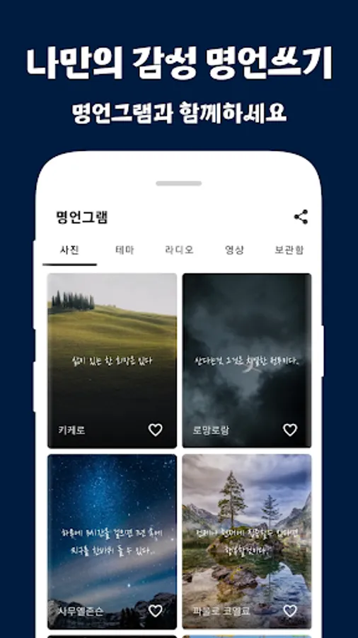 Happiness quotes, success quotes, emotional quotes, good writing, love writing, etc. It provides a function that allows you to easily create various photo quotes.