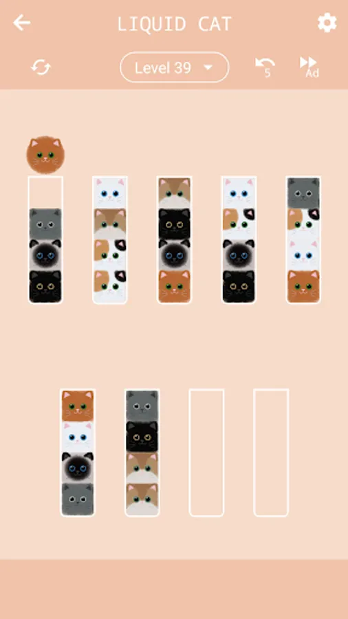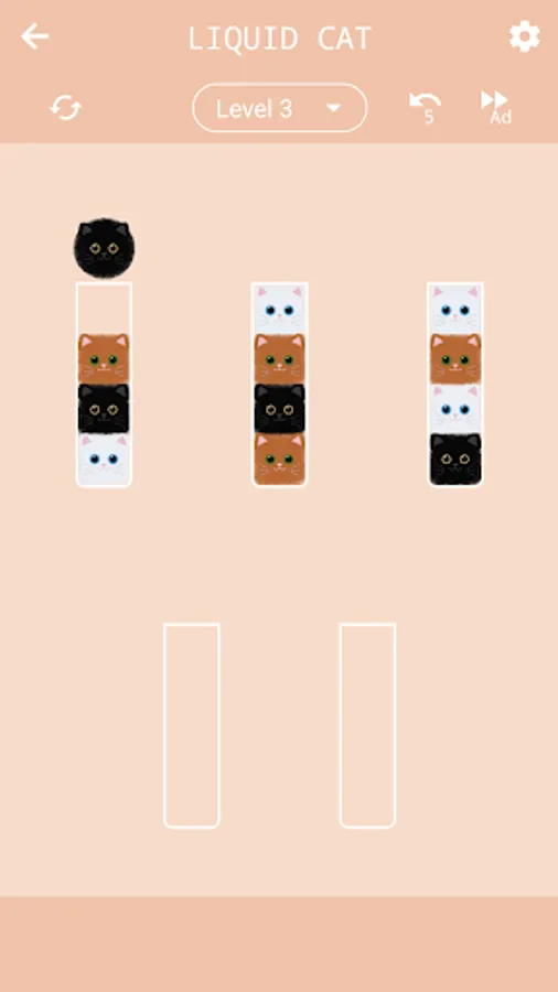 - Click on the other tube to which you want to transfer the selected cat. Can be transferred, if the color of the upper cat in the tube matches the selected one and there is free space;