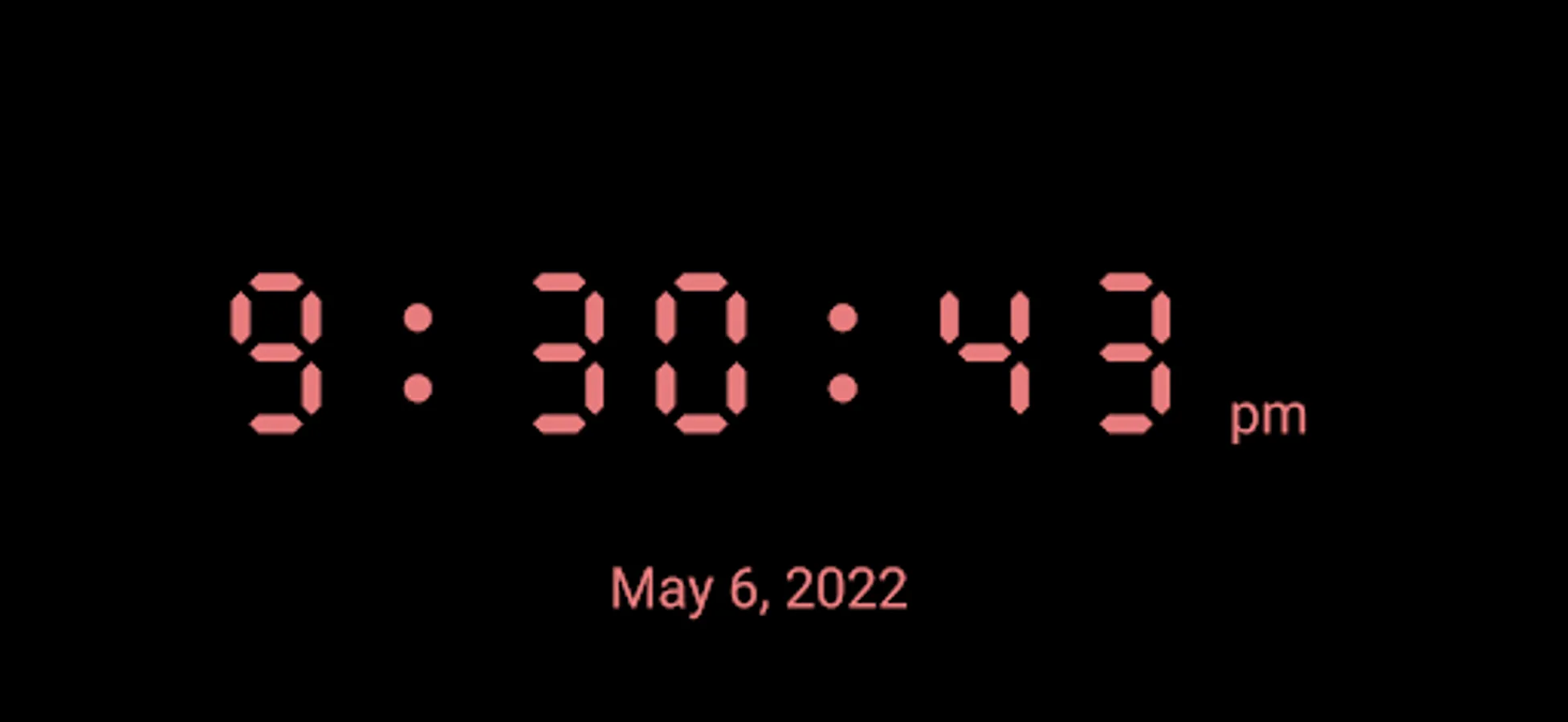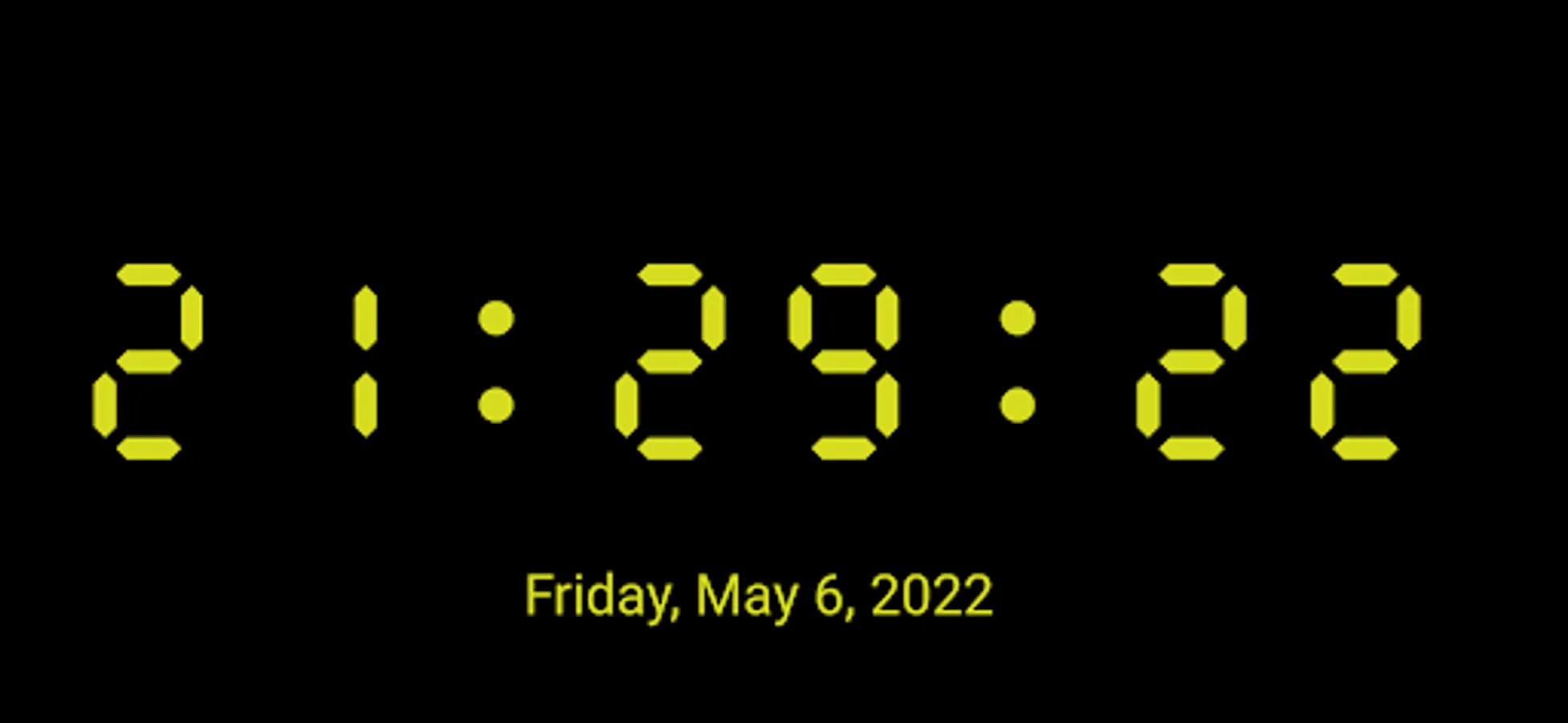 The clock can show the time in various forms (24h, with or without seconds, etc.), fonts and colors. It can optionally also show the date (again in various forms). The clock is stationary - it doesn't move.