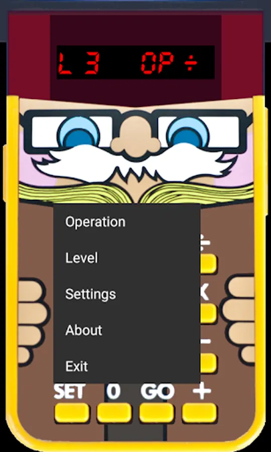 To change the operation: press [SET], then the type [+] [-] [*] [/], or [9] for mixed operation mode. Finally press [GO].