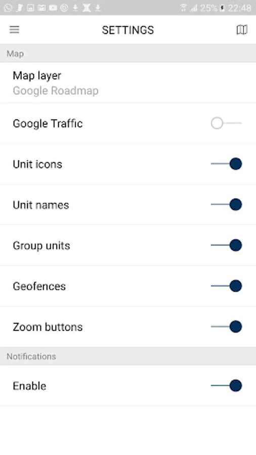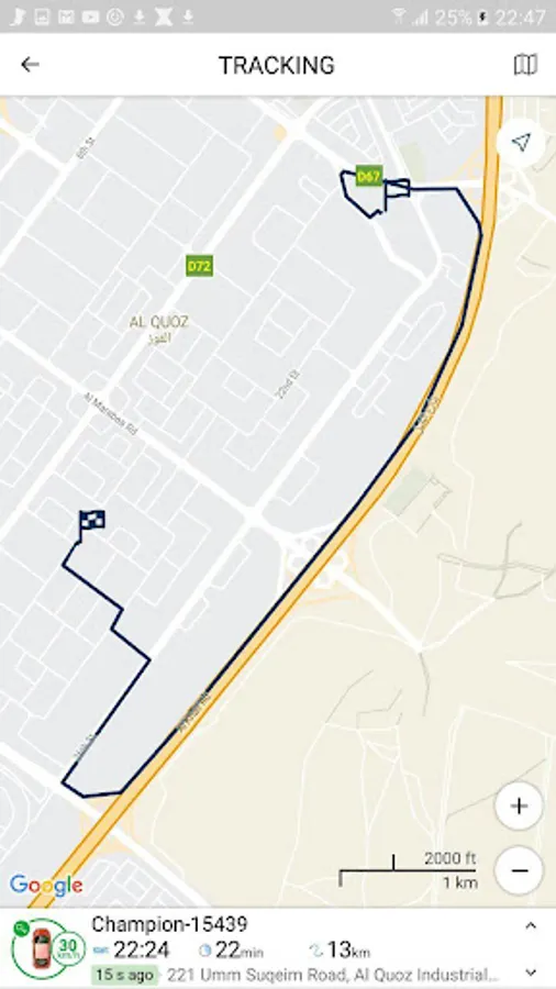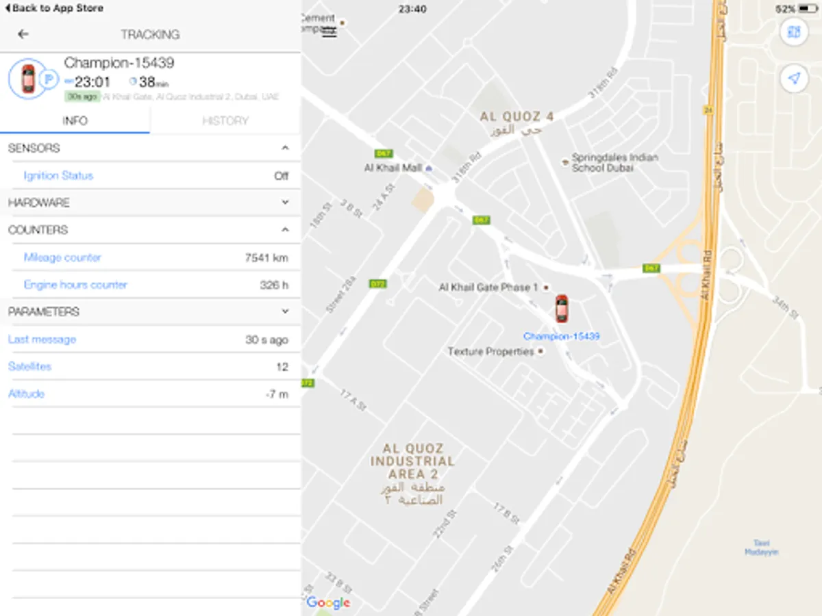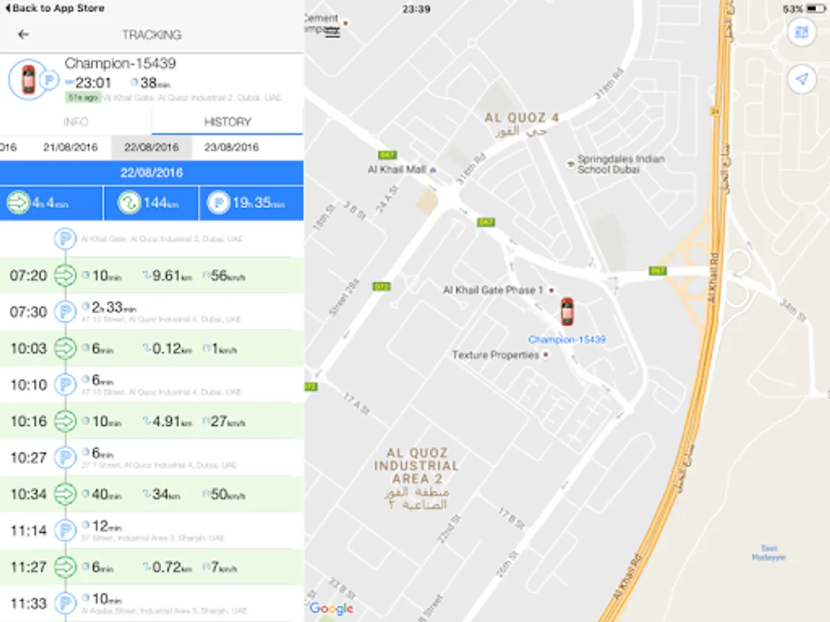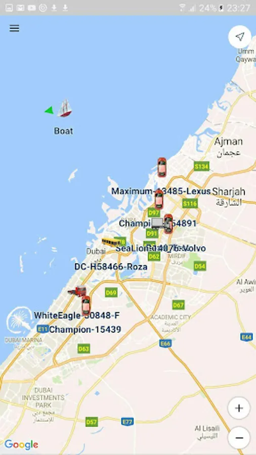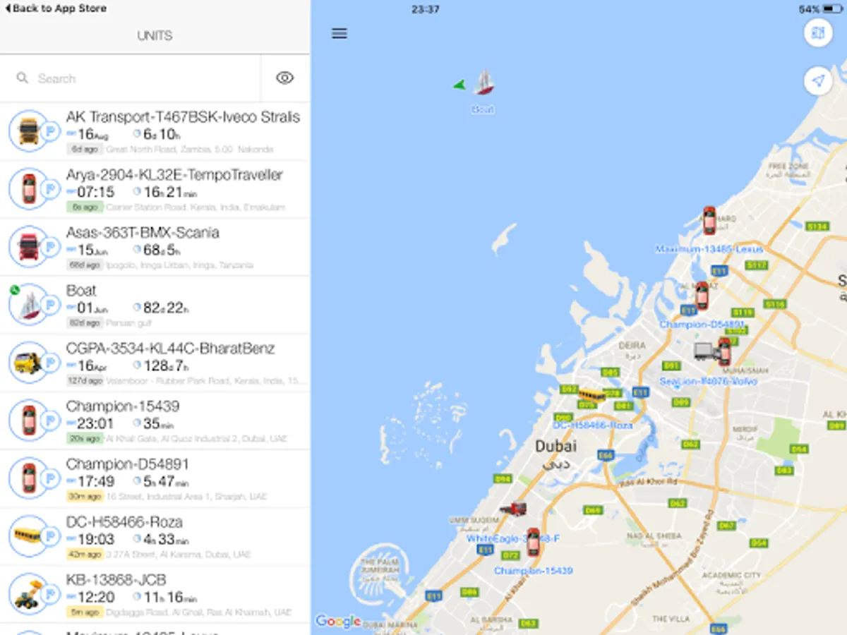 The map view (TRACKING) shows all your vehicles with real time movement. Your position is also shown which makes it easy for you to relate with the locations of your vehicles. This also helps you to reach your vehicle easily.