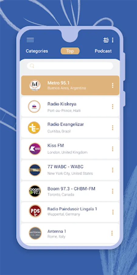 • Quick access to Radio from Countries section (Select the country and touch the Radio Station)