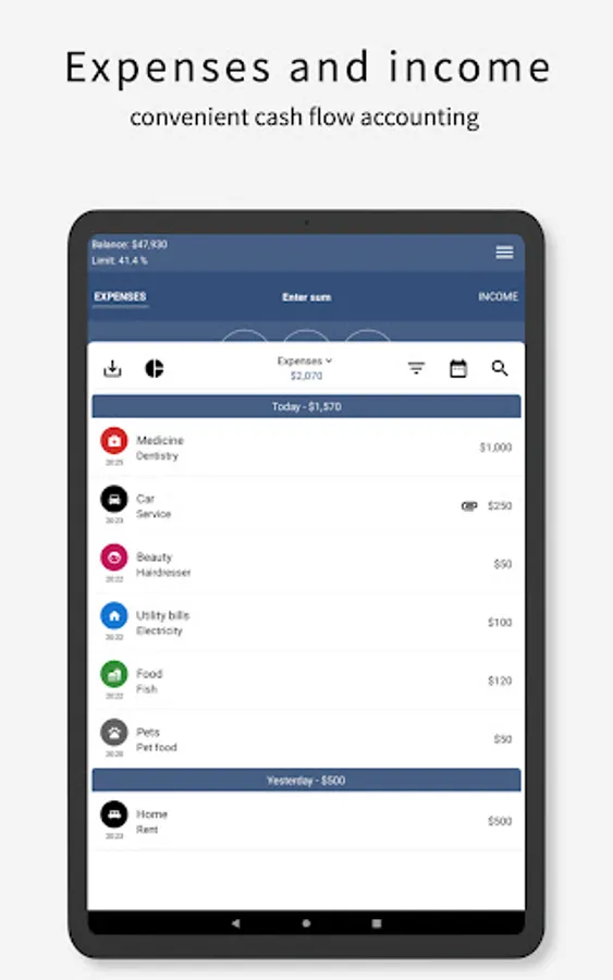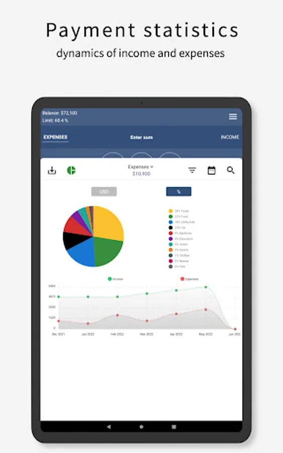 Greedy Wallet - allows you to keep track of expenses and income, control your monthly budget and analyze your cash flows.