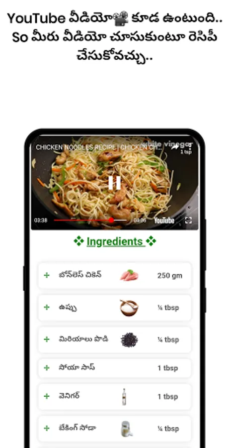 * Also, it contains Fast Food and Chinese Recipes food in Telugu