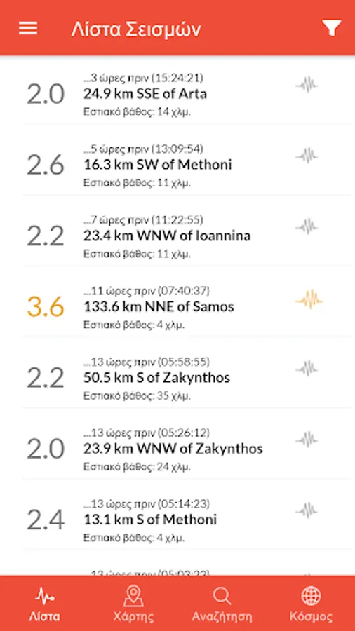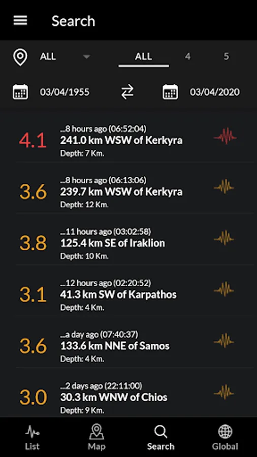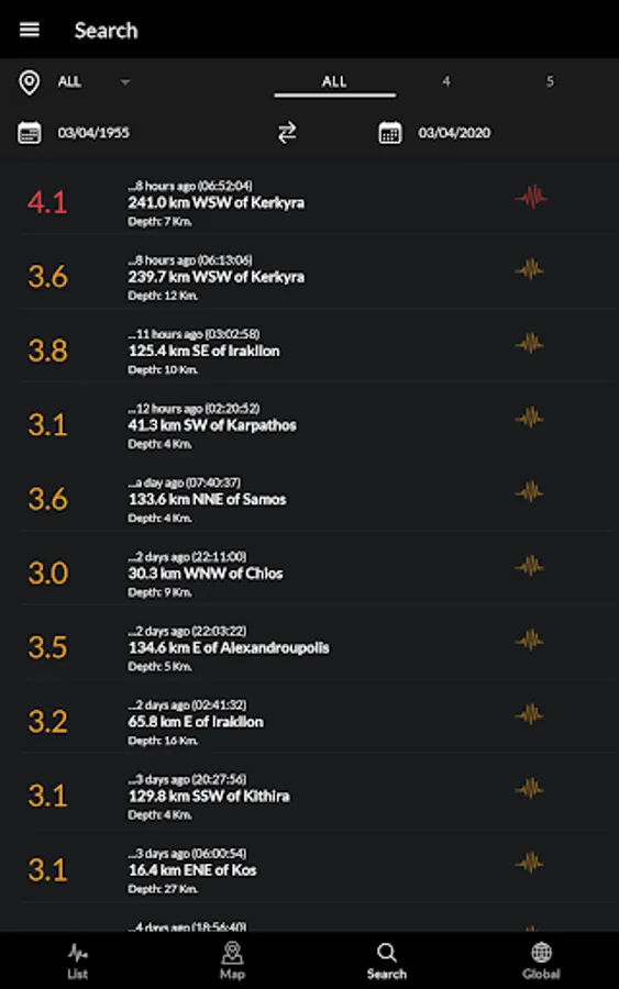 Get the latest Greece Earthquake information. Real Time Notification for earthquakes bigger than 3M. Watch the location of earthquakes on a map. Data are provided from the four different places