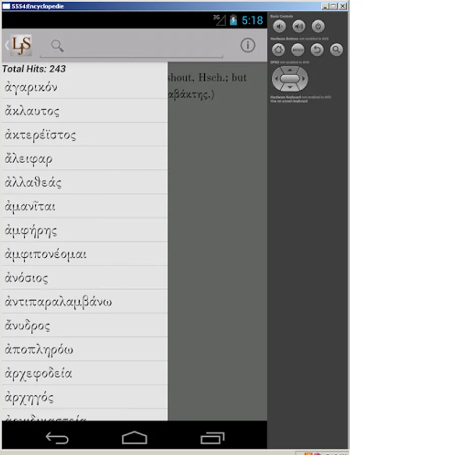 The *only* Android app that gives you the UNABRIDGED Liddell-Scott Greek Lexicon--classical Greek, not modern! All other contenders whose apps claim to have the LSJ only have the Intermediate abridgment. This is an upgrade a long time in the making, after many user requests, and follows the recent user interface upgrade.