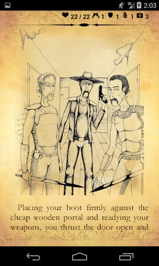 The first in a new series of interactive fiction books for your Android phones and tablets, Westward Dystopia is a novel-length gamebook set in the wasteland of tomorrow written by Jeffrey Dean. The prose is written at an adult or older teen level with post-apocalyptic western, horror, and science fiction themes. Enjoy all-new original artwork by David White and renowned fantasy/sci fi artist Tony Hough.