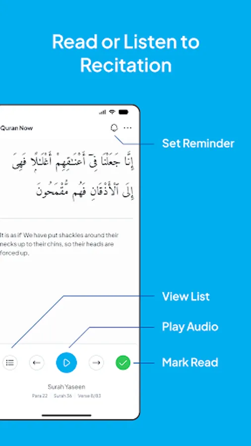 The main idea is to restore the habit of reading Quran on daily bases. The app will keep track of the already read verses.