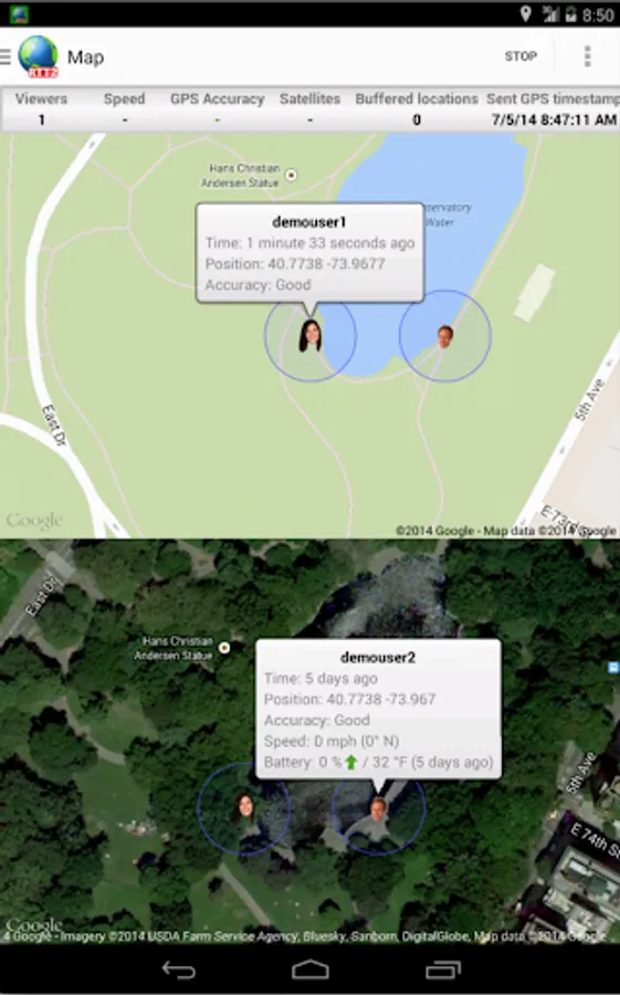 • Multi map mode. Add more than one map on the same screen. Perfect for auto-following more than one user at the same time.