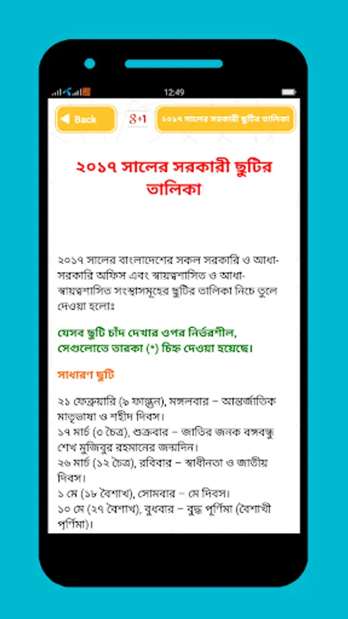 ইংরেজী সন-তারিখ থেকে বাংলা সন-তারিখ বের করার কৌশল, ২০১৮ সালের সরকারী ছুটির তালিকা থেকে শুরু করে অনেক মজার মজার ও গুরুত্বপূর্ণ তথ্য পাবেন আমাদের এই অ্যাপ থেকে। বাংলা ক্যালেন্ডার (bangla calendar 2018) ও বাংলা পঞ্জিকা ১৪২৩ ও ১৪২৩(bengali panjika 2017, bengali panjika 1424) থেকে তথ্য নিয়ে আমরা আমাদের এই অ্যাপটিকে আপনাদের সামনে তুলে এনেছি। এই অ্যাপটি ব্যবহার করে আপনি খুব সহজেই ইংরেজি সন ও তারিখ থেকে বাংলা সন ও তারিখ বের করতে পারবেন। এরপর থেকে আপনাকে আর কাউকে জিজ্ঞাসা করে হবে না আজকে কত তারিখ।অ্যাপটি ব্যবহার করে আপনি জানতে পারবেন কোন দিন কোন দিবস এর জন্য সরকারী বন্ধ। আরও বোনাস হিসাবে পাচ্ছেন কি করে আপনি আপনার জন্মতারিখ বের করবেন তার বিস্তারিত। সব চেয়ে আকর্ষণীয় যা পাবেন তা হল ১০০ বছর কিংবা ১০০০ বছরের নয়, নিয়ে নিন চিরস্থায়ী খৃষ্টীয় ক্যালেন্ডার। এছাড়াও রয়েছে সালতামামি ২০১৬ মানে ২০১৬ সালে এশিয়ার কয়েকটি উল্লেখযোগ্য ঘটনা যা আপনার ৩৮ তম বিসিএস সাধারণ জ্ঞান সম্পর্কিত প্রশ্নের জন্য আপনাকে আগে থেকেই তৈরি করে দিবে।