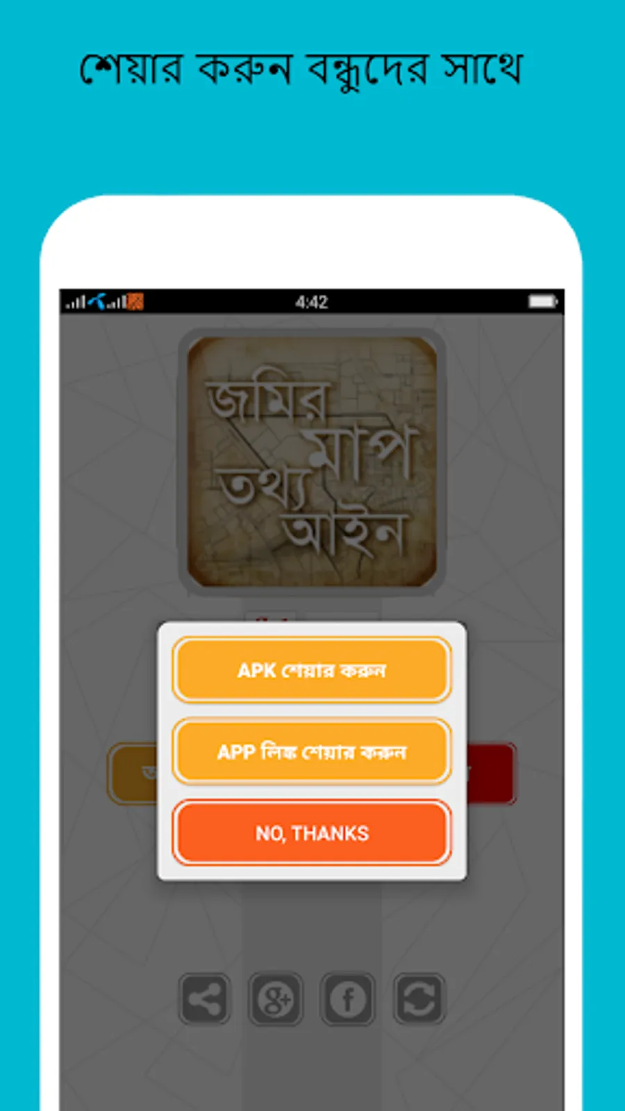 ভুমির মাপ জোক ভুমি ও রেজিস্ট্রি সেবা নিয়ে আমরা আমাদের এই অ্যাপ টিকে সাজিয়েছি। ভূমি একটি গুরুত্বপূর্ণ স্থাবর সম্পত্তি। ভূমি আইন, জমির মাপ-জোক, (jomir map) জমির দলিল, ভুমি জরিপ বিষয়ে ধারণা ইত্যাদি এদেশের মানুষের নিত্যদিনের দরকারি অনুষঙ্গ। তাদের কথা চিন্তা করেই আমরা আমাদের জমির পরিমাপ (jomi porimap)পদ্ধতি অ্যাপটি বানিয়েছি। জমির পরিমাপ পদ্ধতি ও জমির হিসাব সঠিক ভাবে না জানার কারণে আমরা প্রায়ই নানান যুক্কি ঝামেলার মাঝে পড়ি। একথা বলার অপেক্ষা রাখে না যে, ভুমির পরিমাপ সংক্রান্ত বিষয়টি খুবই স্পর্শকাতর। উইকিপিডিয়া থেকে জানা যায় ভূমির পরিমাণ পদ্ধতি ও ভুমির মাপ জোক বিভিন্ন দেশে বিভিন্ন রকম হয়ে থাকে। বাংলাদেশে ভূমি সংক্রান্ত যাবতীয় দলিলা লিখন, সরকারি হিসাব ও অফিসের কাজে ব্যবহার্য দুই প্রকার পরিমাপ হলো শতাংশের হিসাব ও কাঠা'র হিসাব। অবশ্য এই দুইয়ের মধ্যে সম্পর্ক রয়েছে। আর তা হলো এই যে এক একরের এক শত ভাগের এক ভাগকে বলা হয় "এক শতাংশ" জমি (অধিকতর প্রচলিত শব্দবন্ধ হলো "এক ডেসিমাল জমি")। অন্যদিকে কাঠার ঊধ্র্বতর একক হলো "বিঘা" এবং বিঘা'র ঊধ্বতর একক হলো "একর।" ২০ কাঠা সমান এক বিঘা জমি এবং তিন বিঘা সমান এক একর জমি। এই পরিমাপ সর্বজনীন, এবং "সরকারি মান" ( Standard Measurement) হিসেবে অনুমোদিত। বাংলাদেশে ঐতিহ্যগত ভাবে গান্টার শিকল জরীপ পদ্ধতিতে জমির পরিমাণ মাপা হয়ে থাকে। আন্তজার্তিক প্রয়োজনে কখনো কখনো সরকারী কাগজে হেক্টর ব্যহার করা হয়ে থাকে। ল্যান্ড কেনার পর আমরা যে সব সমস্যার মাঝে পড়ি তার মাঝে অন্যতম হল ভুমি ও রেজিস্ট্রি সেবা। কাজেই আপনাকে ভূমি পরিমাপ ভূমি আইন , ভূমির মাপ jomir hisab সম্পর্কে ব্যাপক ধারনা থাকতে হবে নইলে জমির হিসাব ও জমি পরিমাপ নিয়ে আপনাকে অনেক কস্ট করতে হবে। আমরা অনেকেই জমি মাপার পদ্ধতি জানি না। সাধারণত জমি মাপার সময় একজন আমিন বা সার্ভেয়ার অপর পক্ষের সাথে যোগাযোগ করে দুই নাম্বারি করতে পারেন। আপনারা অামিন দ্বারা জমি মাপার সময় কিছু হলেও বুঝতে পারবেন। দুই নাম্বারি করা থেকে আমিনকে বিরত রাখতে পারবেন। যদি ভুমির পরিমাপ এইসব বিষয়ে আপনার ব্যাপক ধারনা থাকে যা আপনিএই অ্যাপ থেকে পাবেন। তাই দেরি না করে জেনে নিন ভূমি জরিপ ও সঠিক ভূমির মাপ।