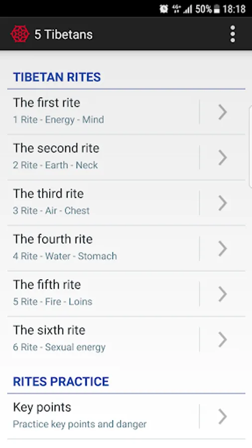 The Five Tibetans or the Five Rites of Rejuvenation, is a system of five, believed to be Tibetan, Yogic exercises said to be over 2500 years old. You flow through the five exercises almost in a meditative dance. Each exercise stimulates a particular chakra or hormonal system and revitalizes certain organs, so that the five rites together form a complete workout for the body as a whole.