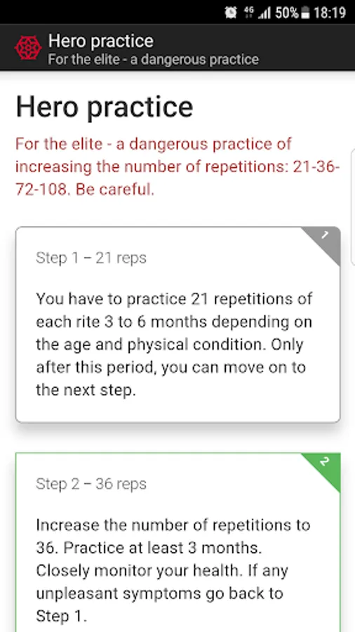 -Detailed description of standard (3-21), steps(1-21+) and hero (21-36-72-108) rite practices;