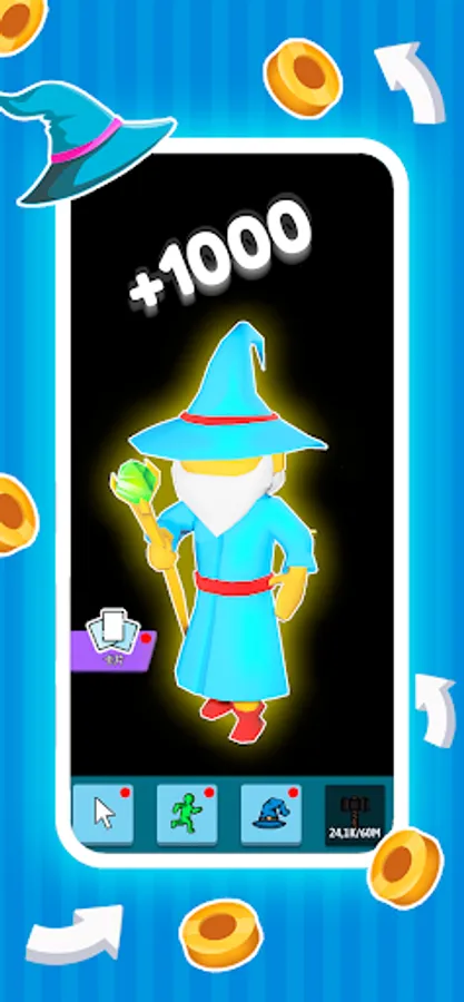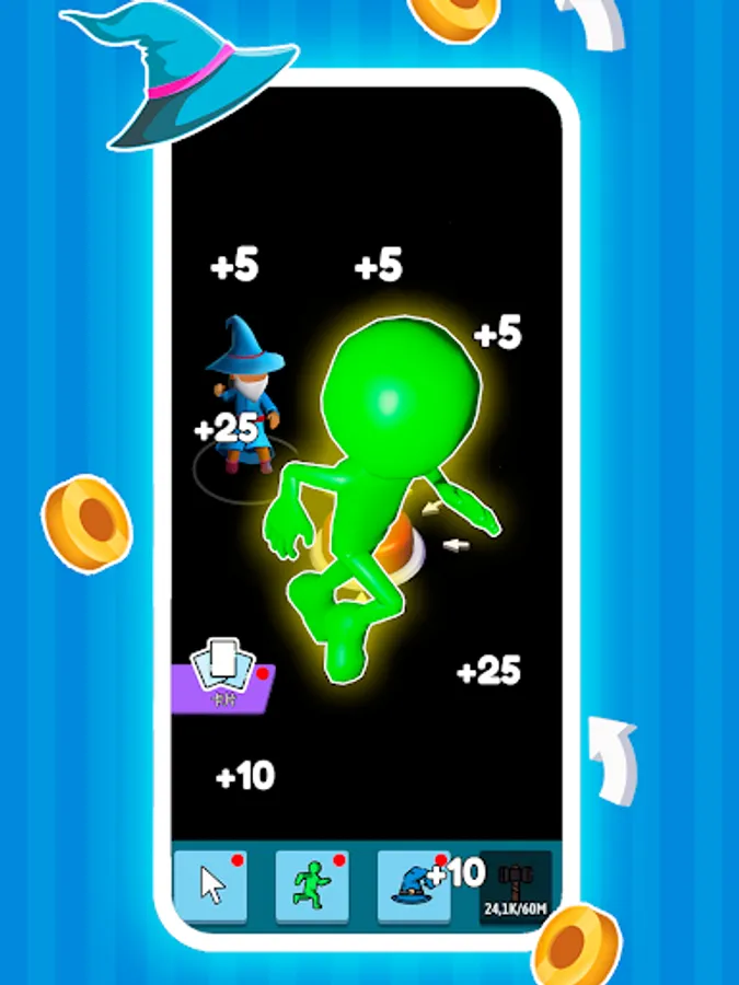When you press button, you can reach a large financial fortune and feel like a millionaire. This is not a joke; your clicks will not be limited by anything! You can spend these coins on special bonuses. For example, you can use an automatic coin pusher that will click the buttons instead of you. Or you can introduce colored men into the gameplay of clicking games, who will also press the button while bouncing on it, multiplying your income. And more and more of these functions are being opened every time.