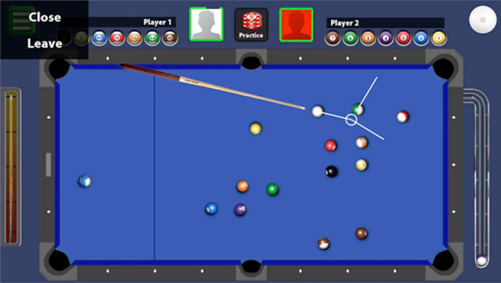 Touch control for moving the stick, adjust the direction and intensity, strike the ball, WIN! Face the challenge, level up, collect exclusive cues, increase your ranking.