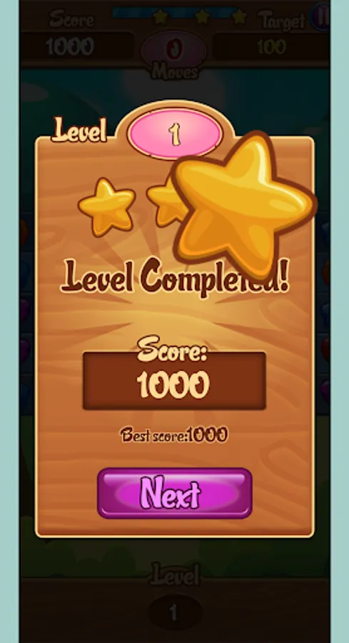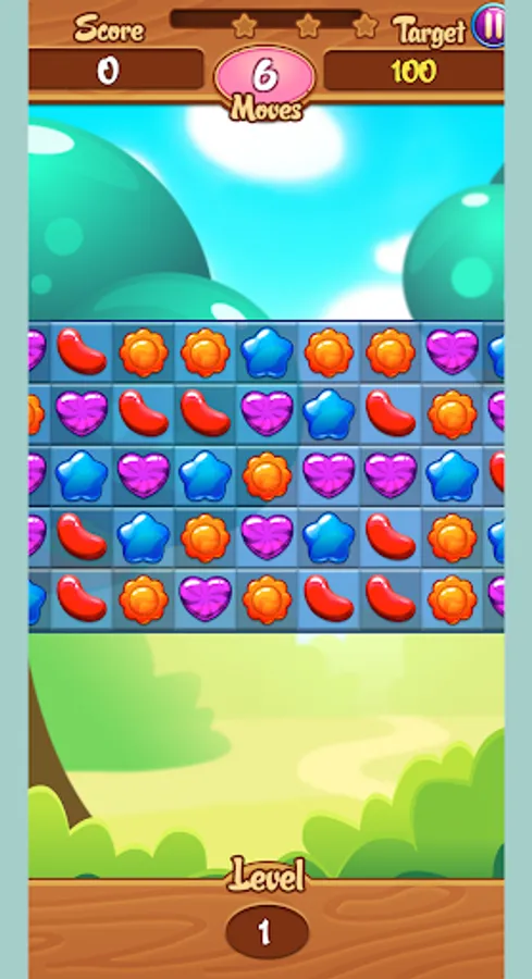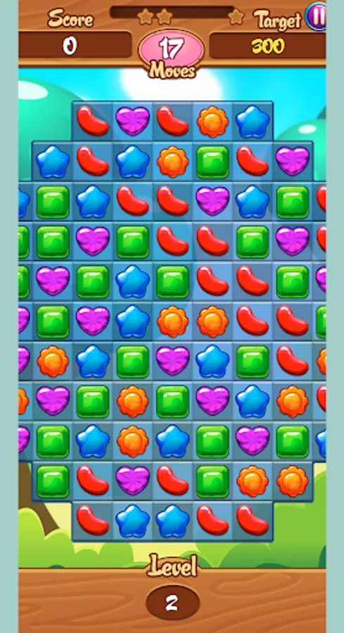• Finish the level with the least move possible to get higher scores and more candy stars.