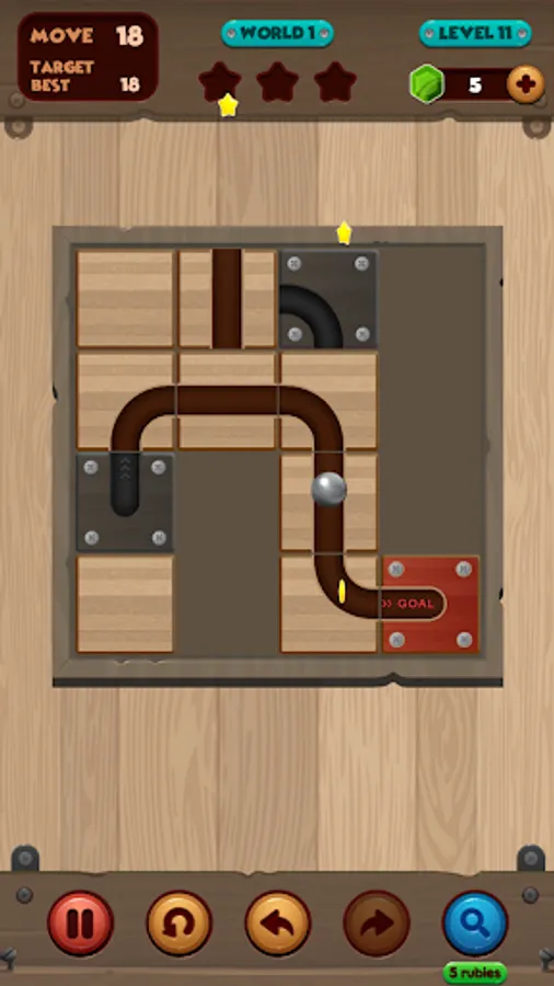 Move the blocks with your finger to create a path for moving the ball to the red GOAL block. But riveted blocks can't be moved. Are you ready to play? Download and start solving puzzles now!