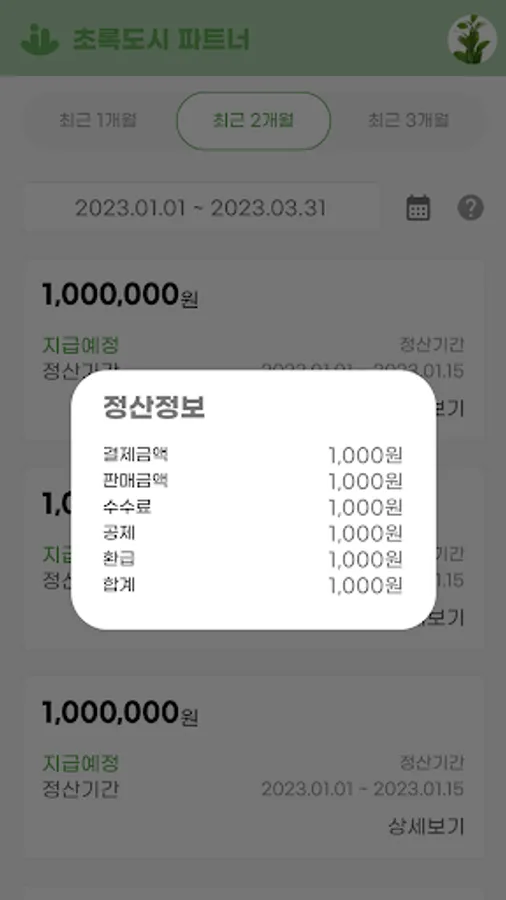 Green City partner app is an application that provides product management, partner information and settlement information for plant brokerage sales platform vendors. It provides functions such as product registration, modification, deletion, and order status check through a convenient and intuitive UI. In addition, it provides partner information and settlement details transparently to help businesses operate and support growth.