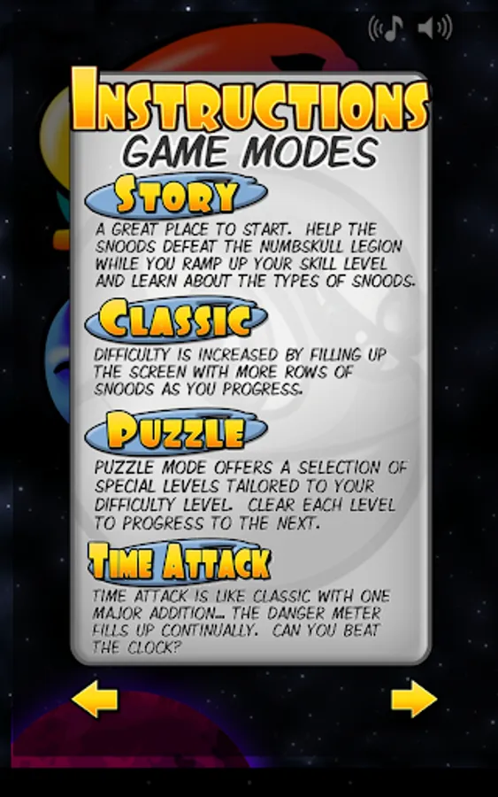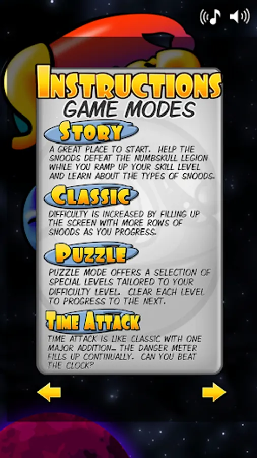 Snood is one of the most popular puzzle games of all time. Snood is a fun puzzle game that tests your intellect rather than your reflexes. Your goal is to save all the trapped Snoods by launching other Snoods at them. If you connect three or more Snoods, they will disappear. If that leaves any Snoods not connected to the top of the playing field, they will fall to safety. Don't take too long, though - every Snood you launch increases the danger level.