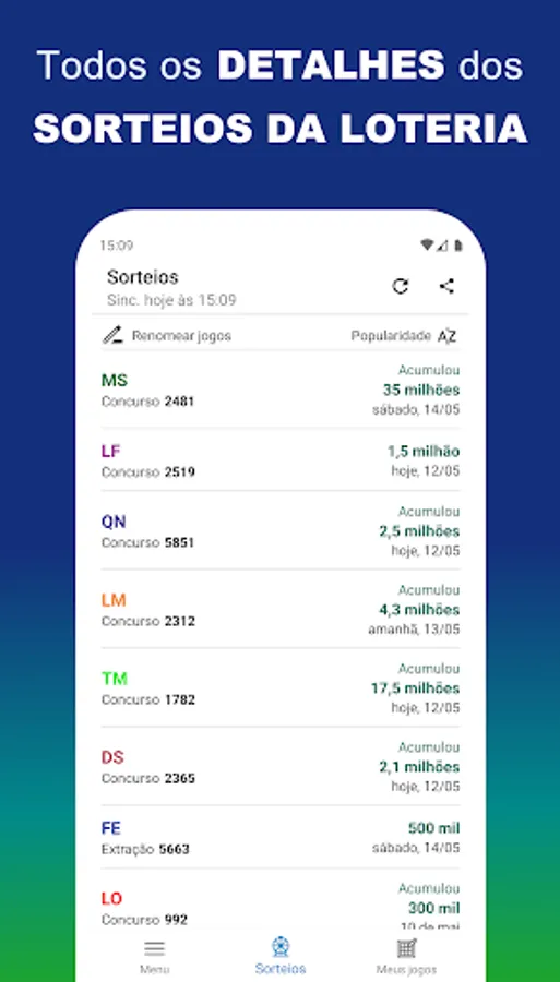 All the details of the Lottery Draws and Automatic Conference of your Registered Games