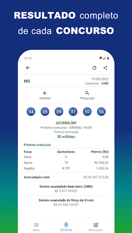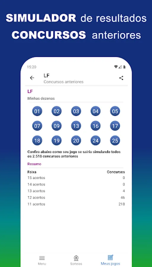 (ATTENTION, the app does not place bets, that is, the registered games are only for simple conference, you must place your bets on the official channels.)