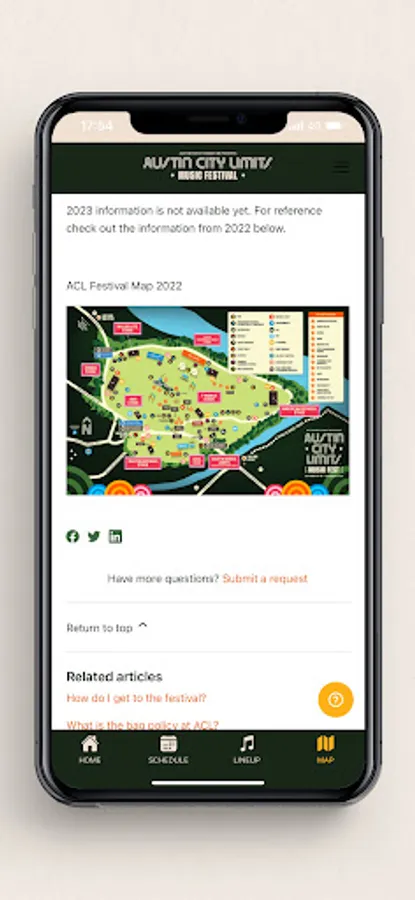 This is the festival's official year-round mobile app. Keep it installed all year for the following key features and benefits: Receive Notifications - Be sure to opt-in to notifications to be the first to get lineup and on-sale announcements or changes, emergency information while on-site, special offers, and more - these will always come direct from festival staff. Explore the Lineup - Sort and filter the lineup of talent from A-Z or by headliners. Personalize it by adding bands to your custom schedule to share with friends. Clicking once opens their detail page where you can read their bio, view their video, or go to their website when available. When the full schedule becomes available, use the schedule screen in portrait or landscape mode to manage your entire day. Explore the Map - The map feature comes with an interactive map with filterable map pins. . Click a pin to see its name and brief description. This feature also comes with a static PDF map that can be used offline or when there's bad cell service.