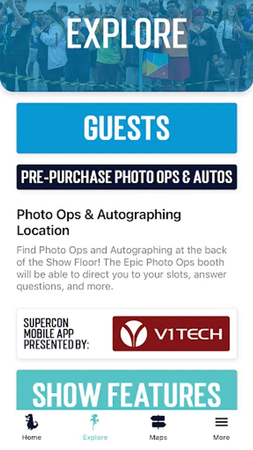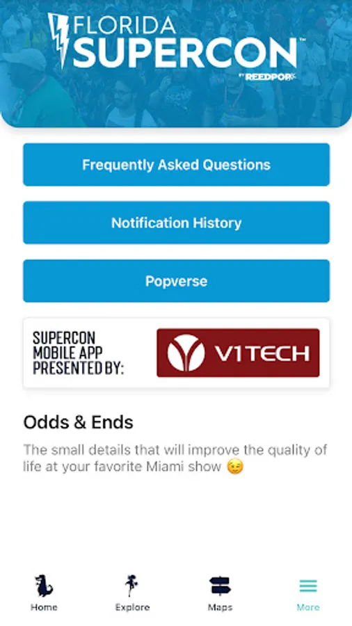 The Florida Supercon Mobile App, presented by V1 Tech, is your digital guide to everything happening at Supercon. This app provides you with the latest news, guest announcements, exhibitor list, Artist Alley list, all without needing to access wifi! Start planning your weekend by adding Autograph Sessions, Photo Ops, and Panels to your schedule and use our maps to navigate around the show! Don't go it alone, download the official app today.
