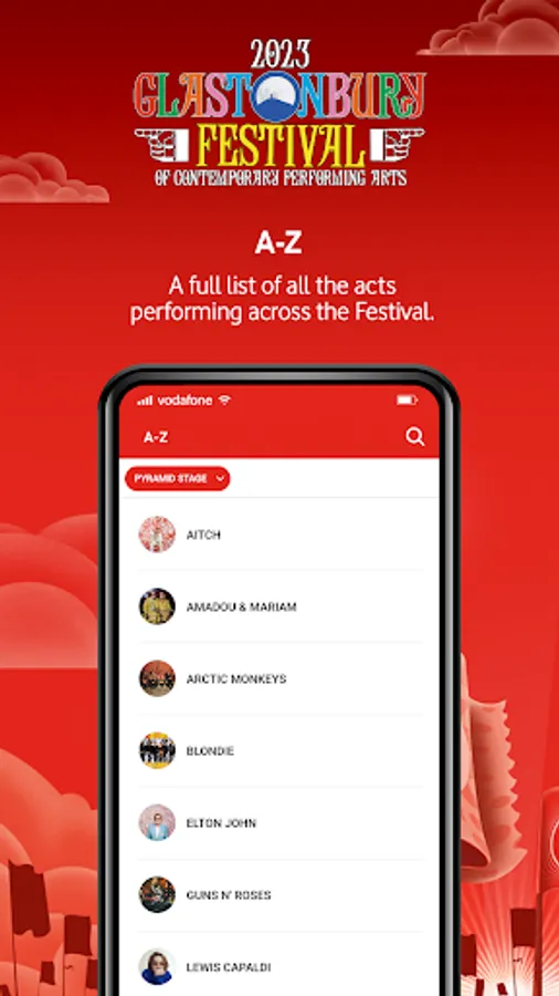 – Search all of the artists performing at Glastonbury to find your favourites and discover the incredible array of stages in an A-Z list.