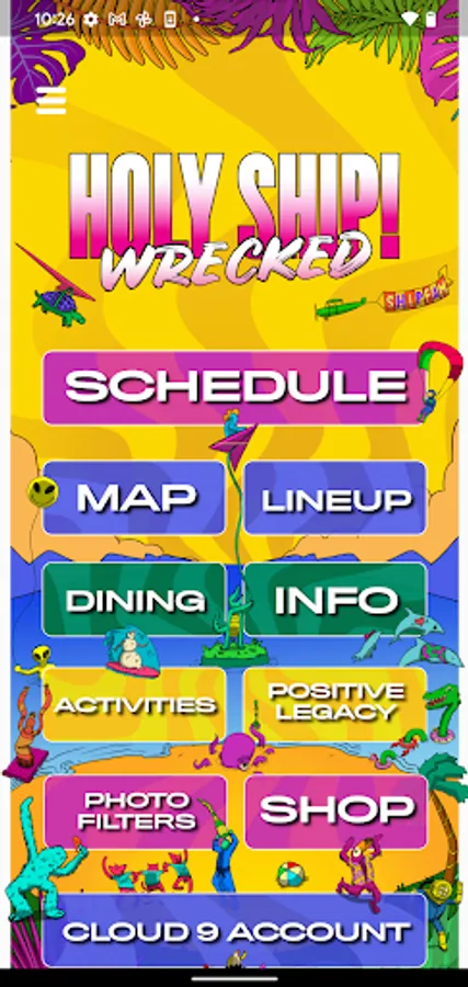 Plan your trip and stay up to date with the Holy Ship! Wrecked app.