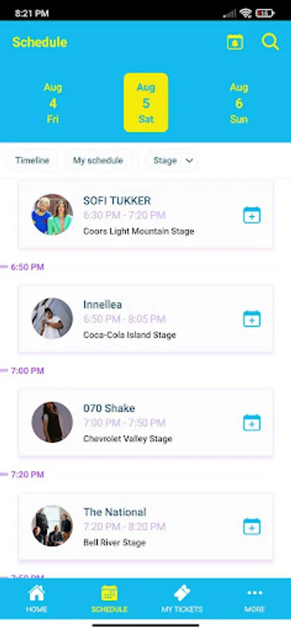 Get notifications 15 minutes before your favorite artists hit the stage.
