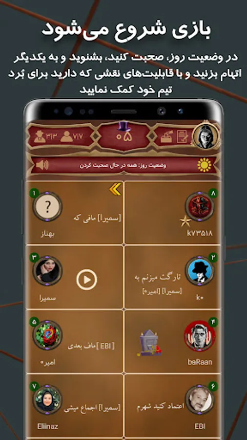تجربه ای نزدیک به بازی مافیا دورهمی با امکان صحبت صوتی و متنی بین اعضا