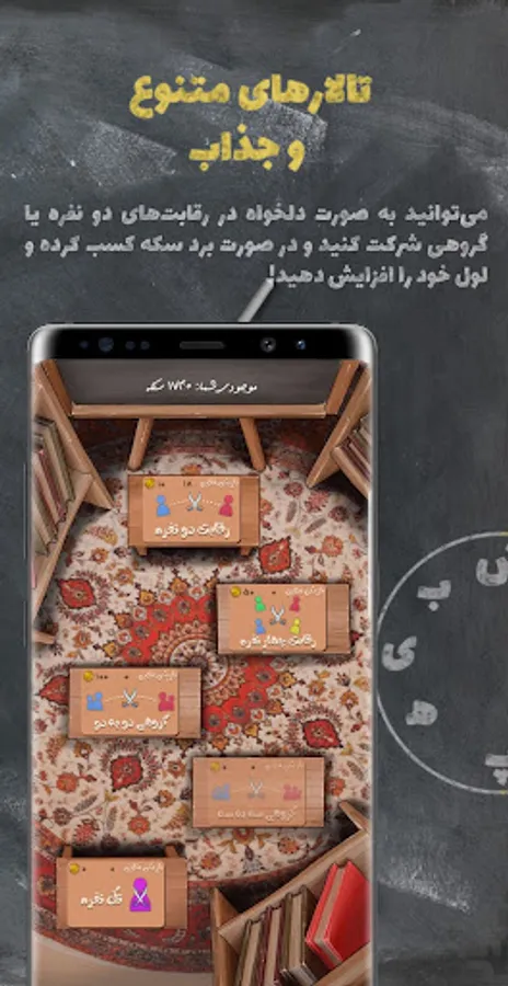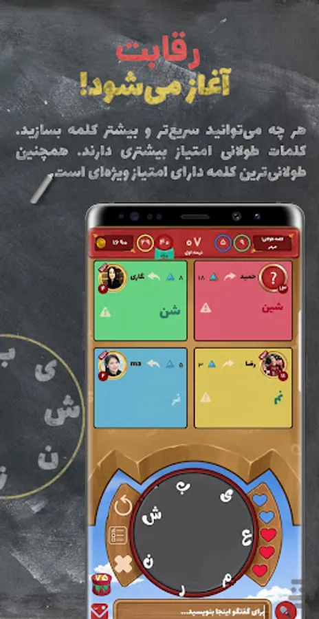 Challenge your ability to make as many Persian meaningful words as you can in different game rooms.