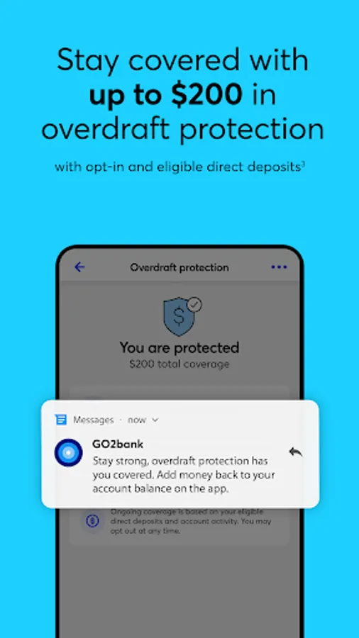 Stay covered when you overspend with up to $200 in overdraft protection after eligible direct deposits and opt-in³.