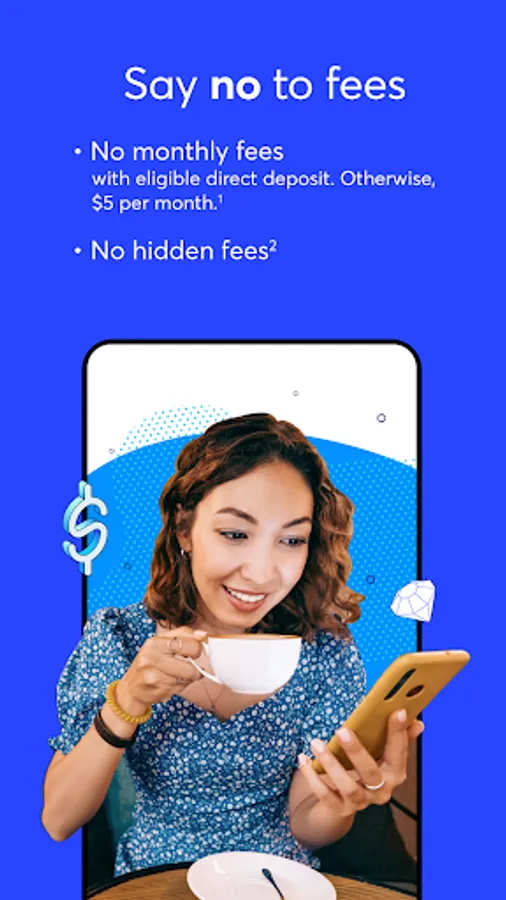 Say no to monthly fees and hidden fees² and yes to keeping more of your money. No monthly fees with eligible direct deposit¹. Otherwise, $5 per month.